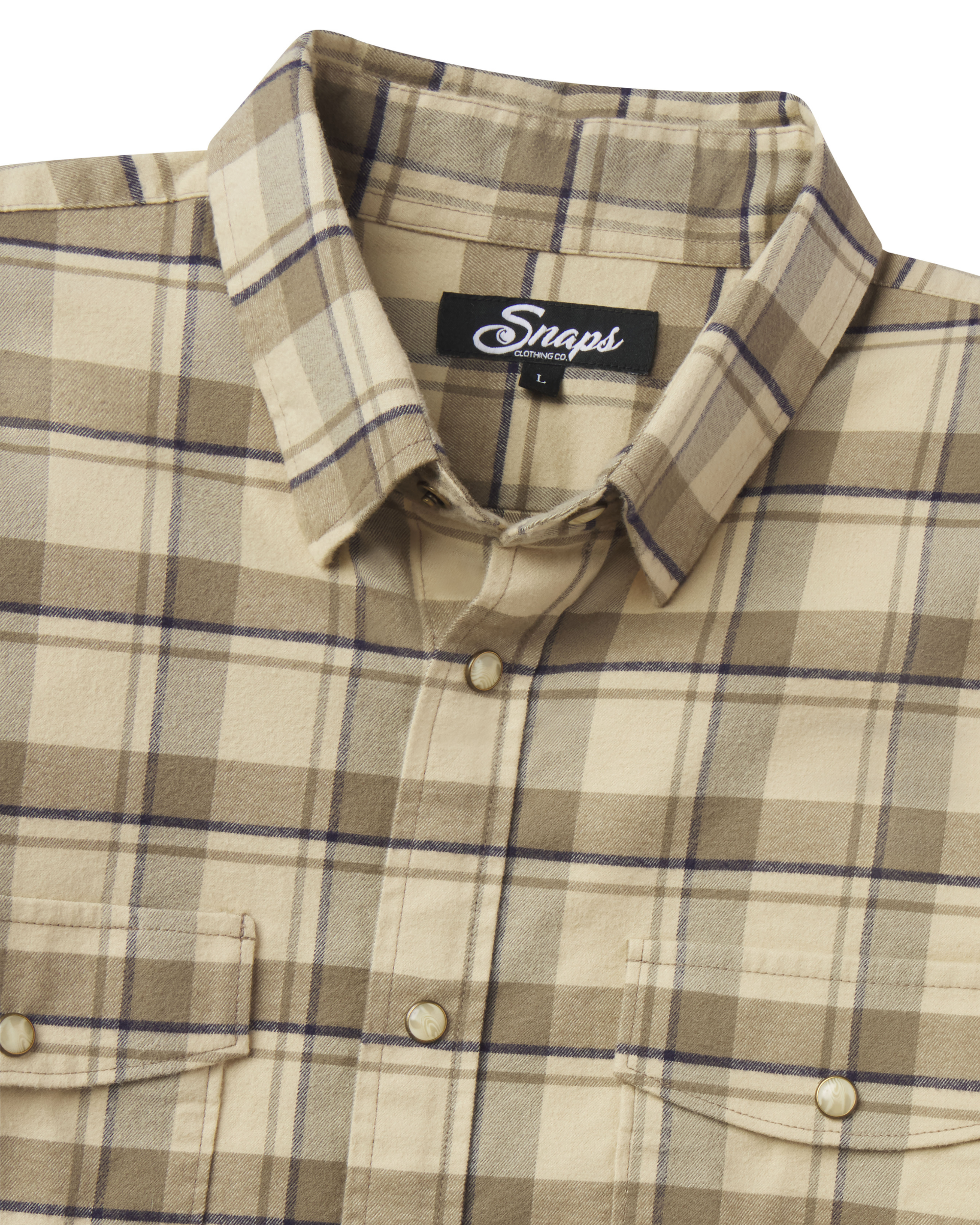 Rambler Flannel Taupe Plaid Pearl Snap Long Sleeve Shirt