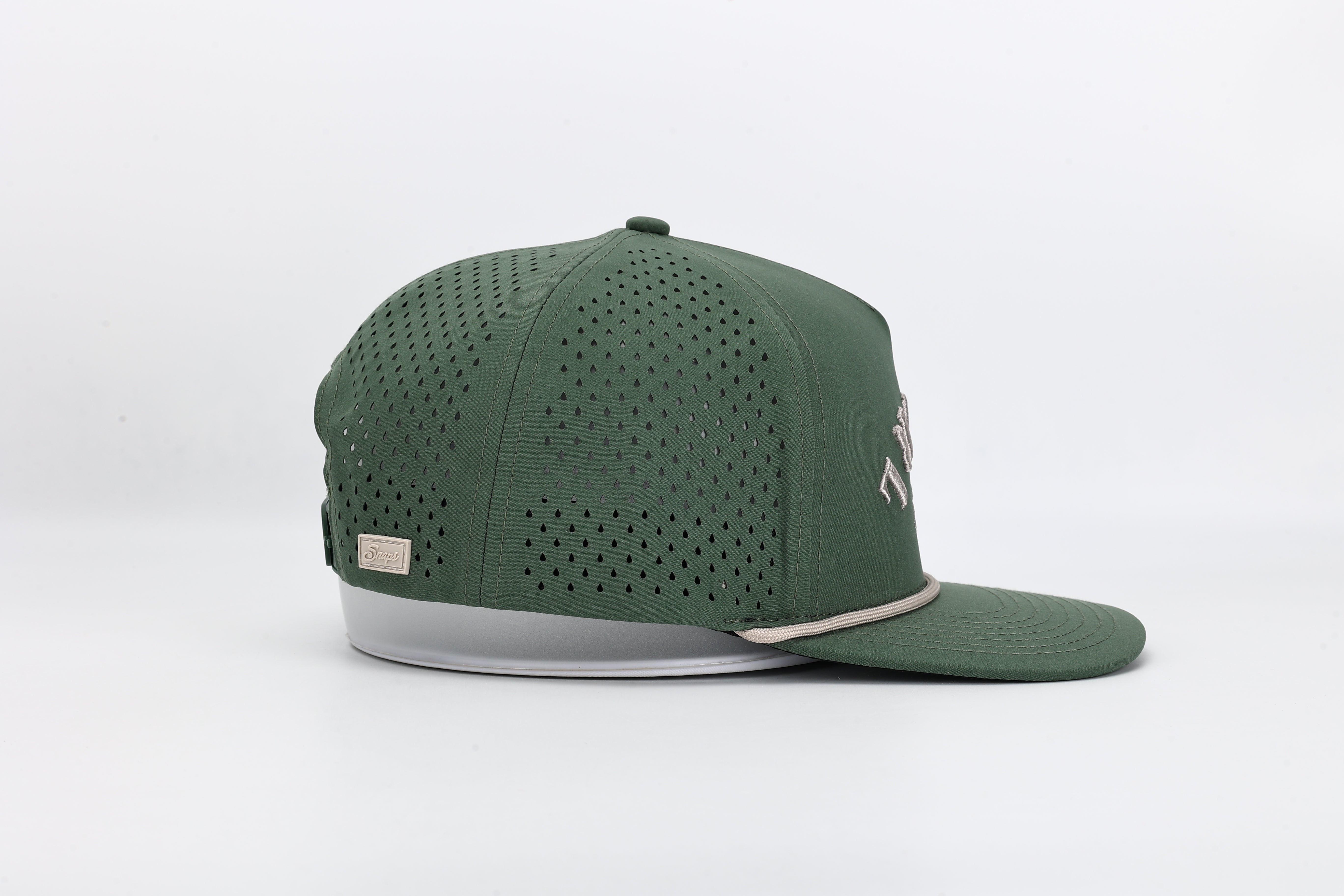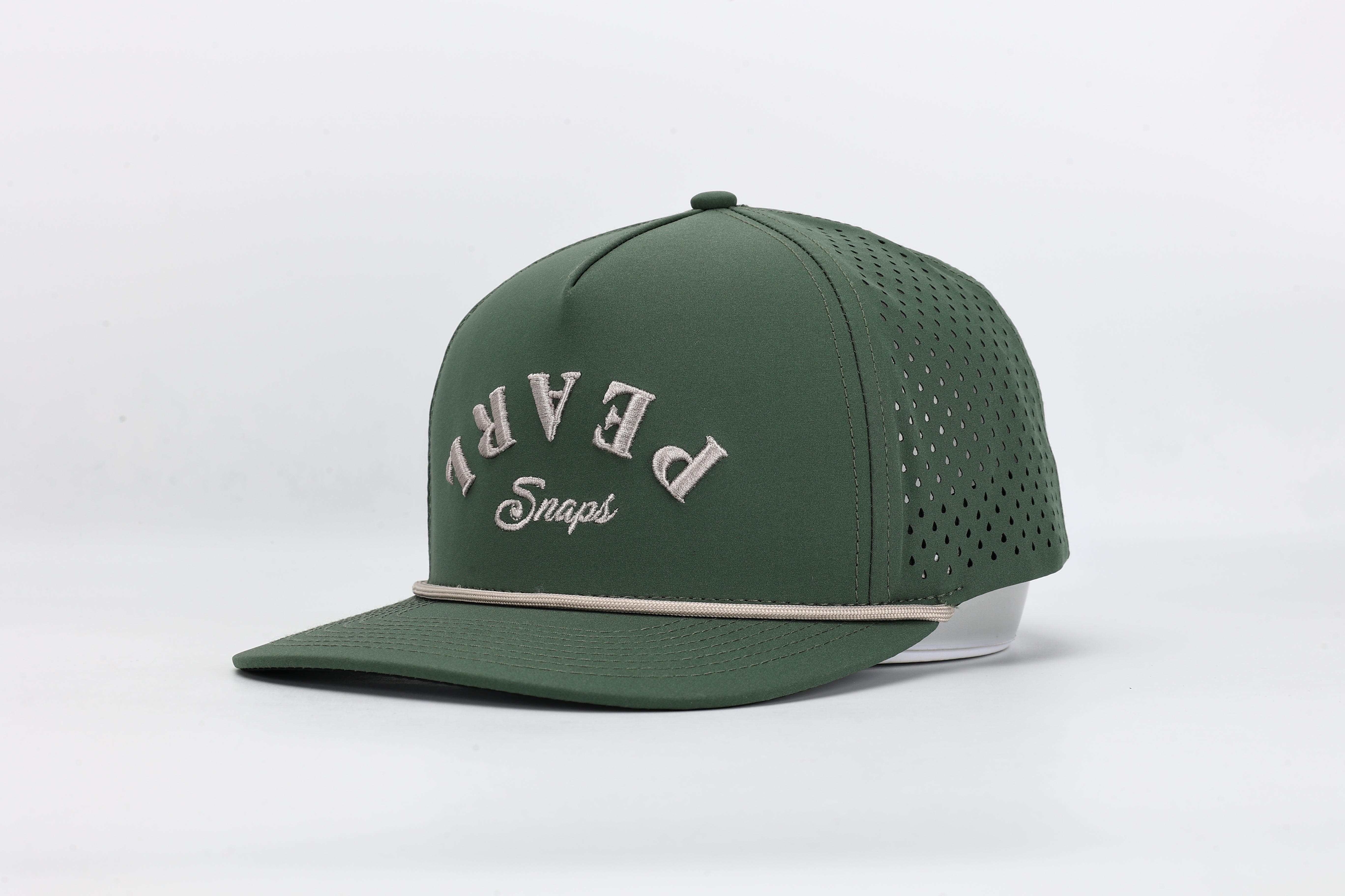 Crafted from UV-protectant, water-resistant performance fabric, this hat is made to handle heat, sweat, and long days under the sun. The laser-perforated side panels deliver breathable comfort, while the structured front panel keeps its shape no matter where the day takes you. Finished with an embroidered “PEARL Snaps” design and a signature rope detail, it’s a timeless nod to the western tradition that inspired us.