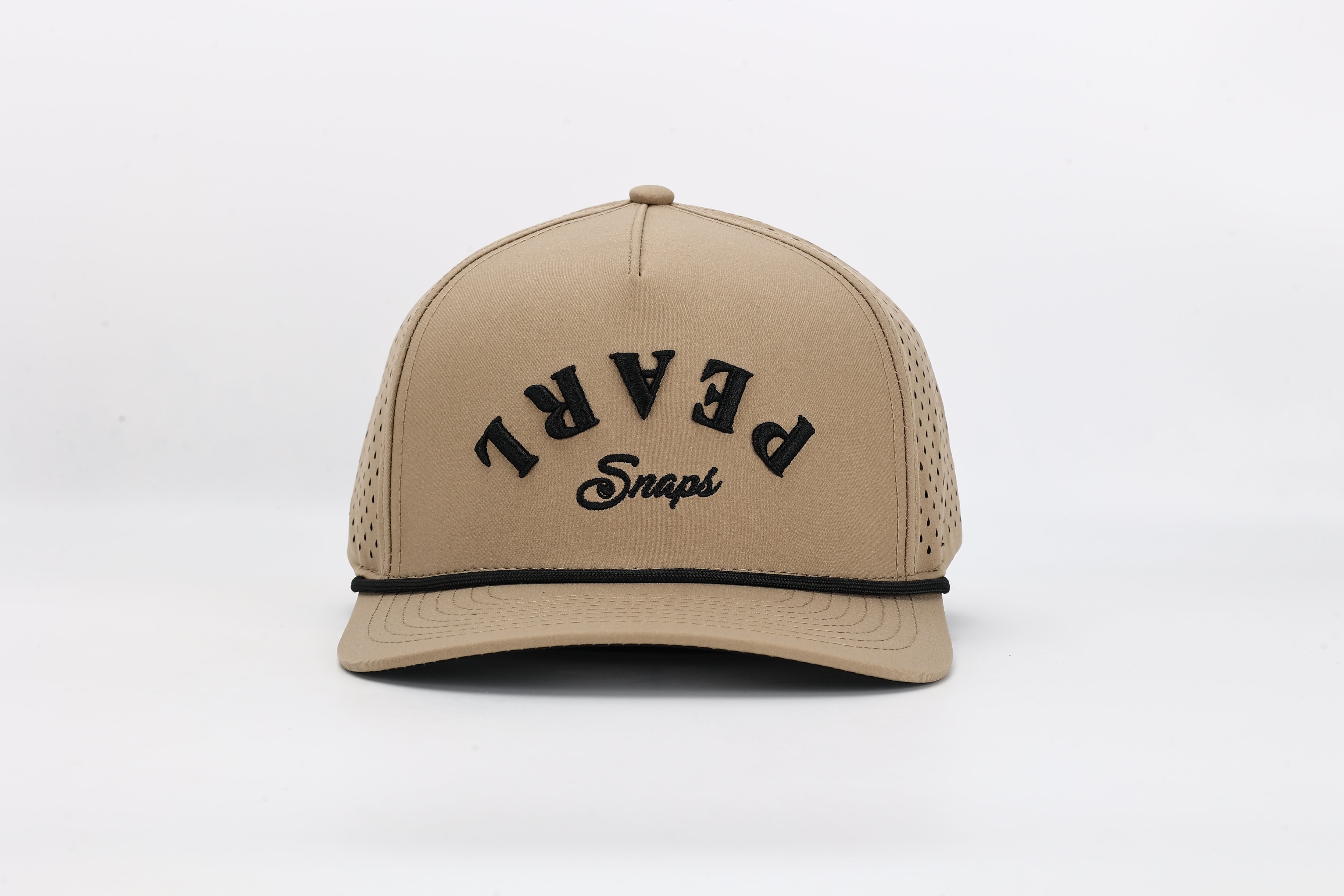 Crafted from UV-protectant, water-resistant performance fabric, this hat is made to handle heat, sweat, and long days under the sun. The laser-perforated side panels deliver breathable comfort, while the structured front panel keeps its shape no matter where the day takes you. Finished with an embroidered “PEARL Snaps” design and a signature rope detail, it’s a timeless nod to the western tradition that inspired us.