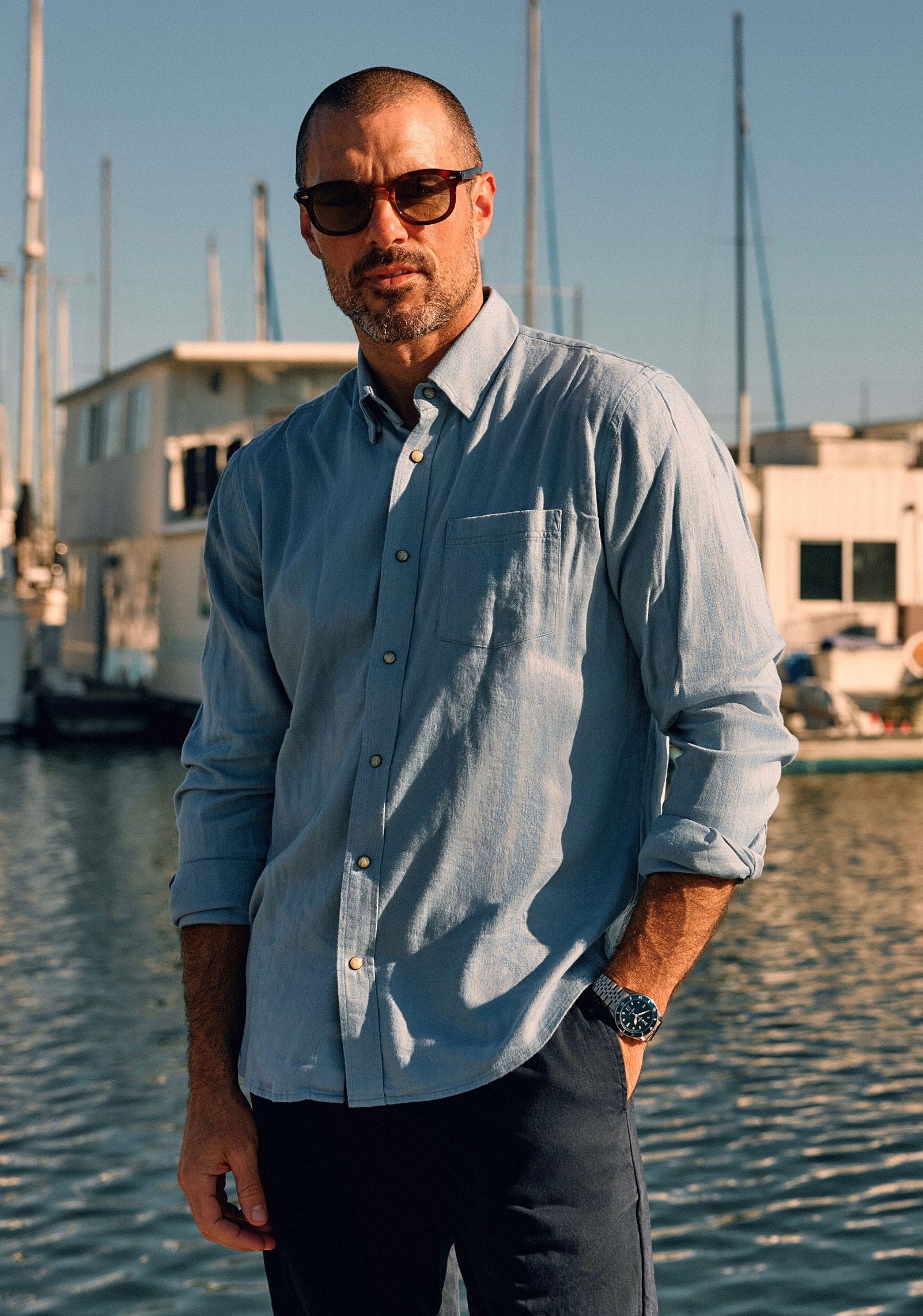 Our Spring Landry Linen Pearl Snap is crafted from an ultra-soft, breathable fabric blend that keeps you cool and comfortable from sunup to sundown. Crafted as the perfect multi-season staple, it's mid-weight design provides comfort on cool spring evenings, while allowing you to enjoy inn the hot summer months with maximum breathability, stretch, and style. Effortless design and refined fabrics make this the perfect balance of relaxed feel and polished style for the season ahead.