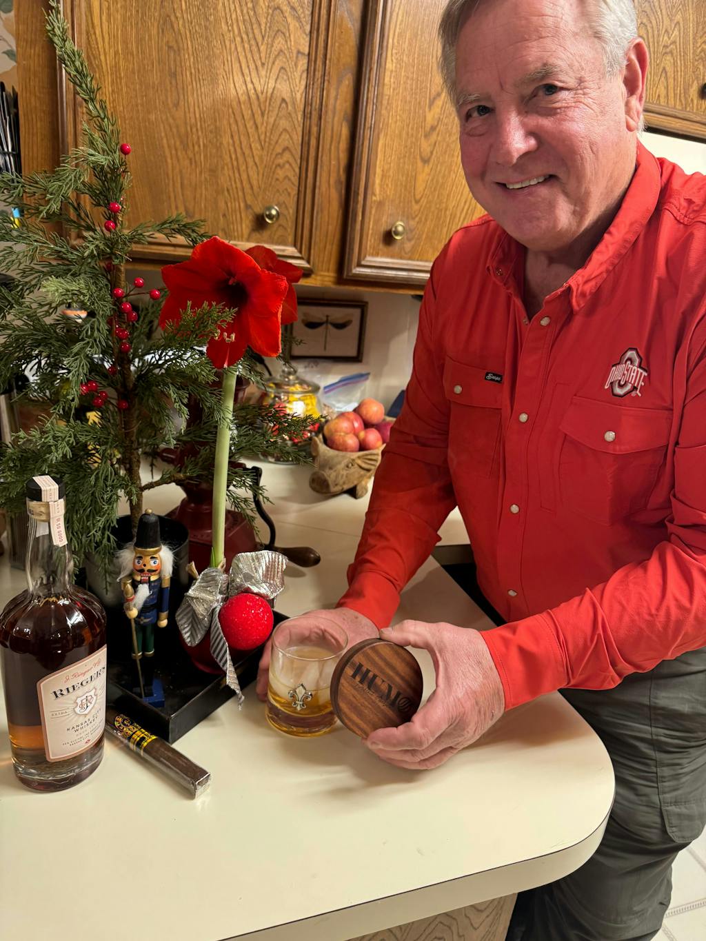 I gave my boyfriend the Ohio State shirt on New Year’s Eve before the Cotton Bowl game. He loved it and commented on how soft it was and how easy the snap closures were. I thought he looked incredibly handsome in it. His smoke infused whiskey wasn’t the only thing smokin’ in the room that night. I hate the Buckeyes lost that game to the Hurricanes but we have next year and he has an amazing shirt to wear for the season.