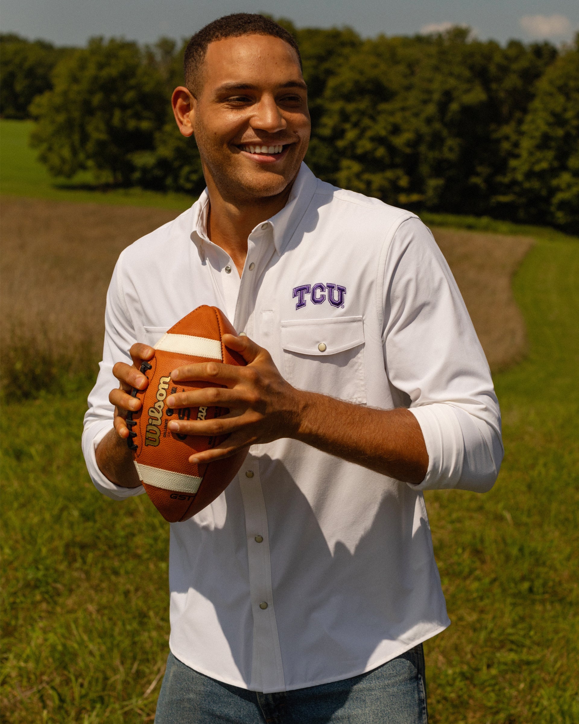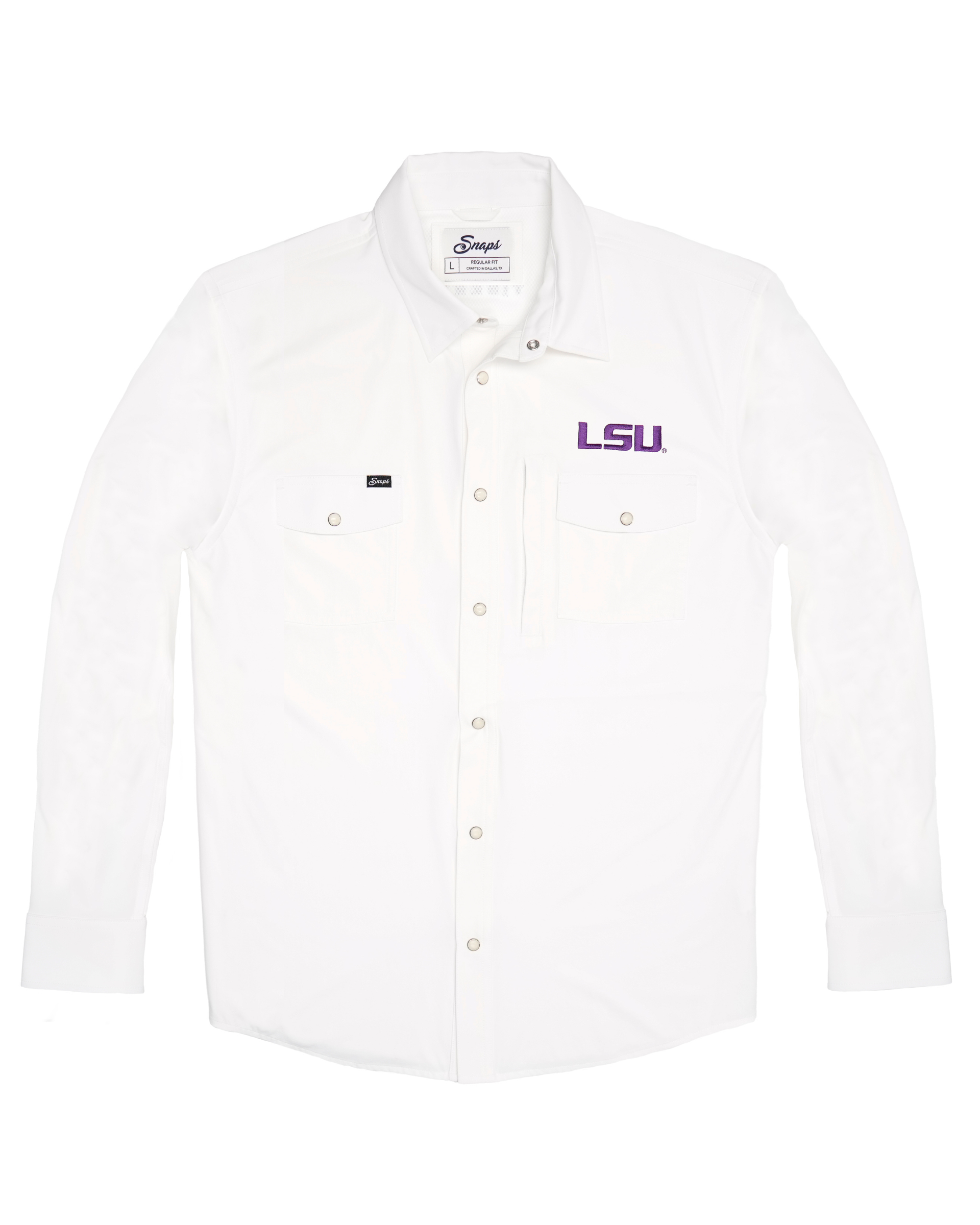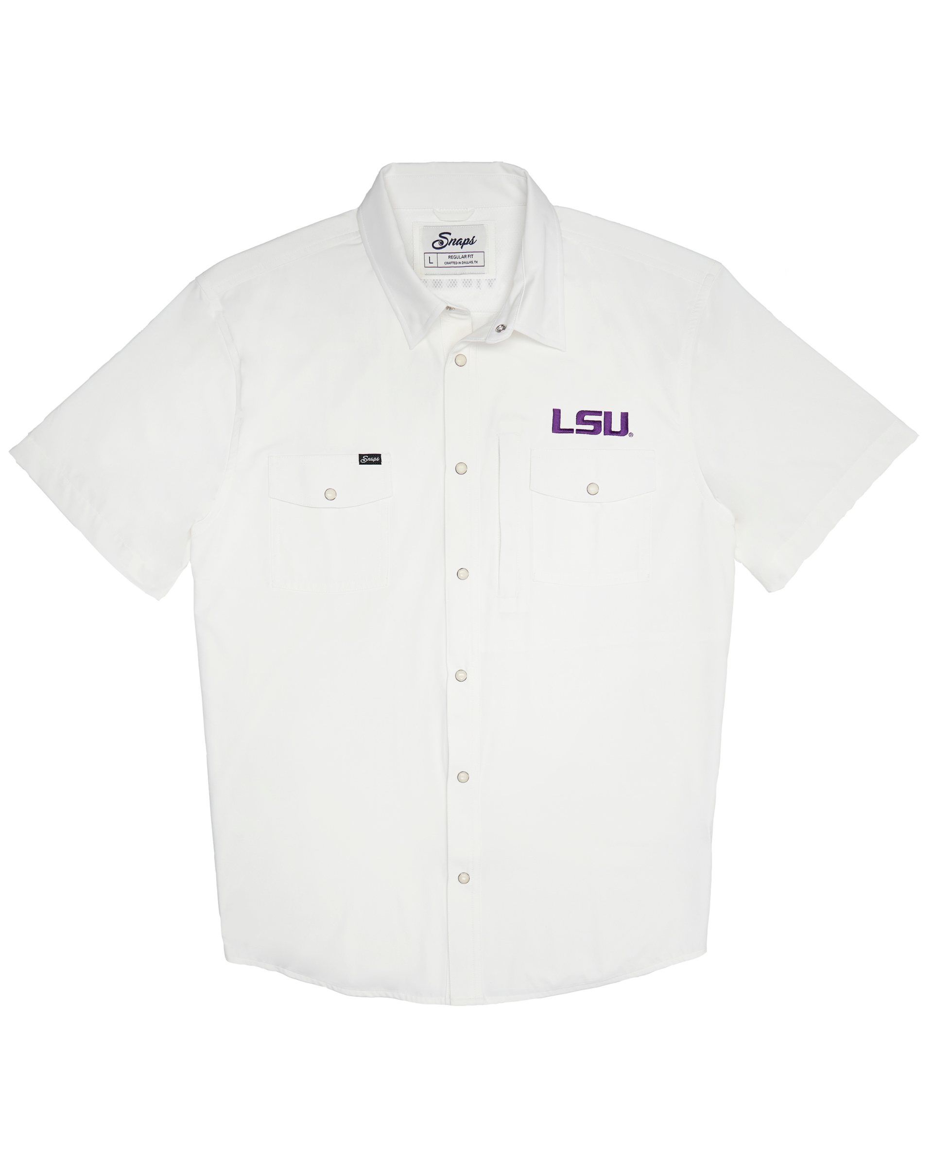 The officially licensed Tailgater Collection is a stylish alternative for cheering on your team! As comfortable as your favorite tee yet elevated enough to transition with you to a nicer setting. With the durability to handle all-day fun, the Snaps Tailgater shirts have the perfect blend of stretch and softness to move with you while keeping you cool and ready for game day!